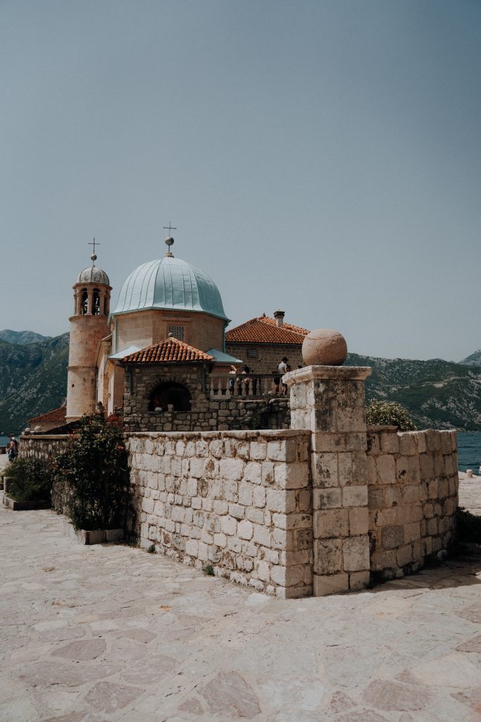 In Kotor, you can book a boat trip to explore the bay – one highlight is the little church on the water, Our Lady of the Rocks, with its beautiful blue dome. A really charming and unique spot!
